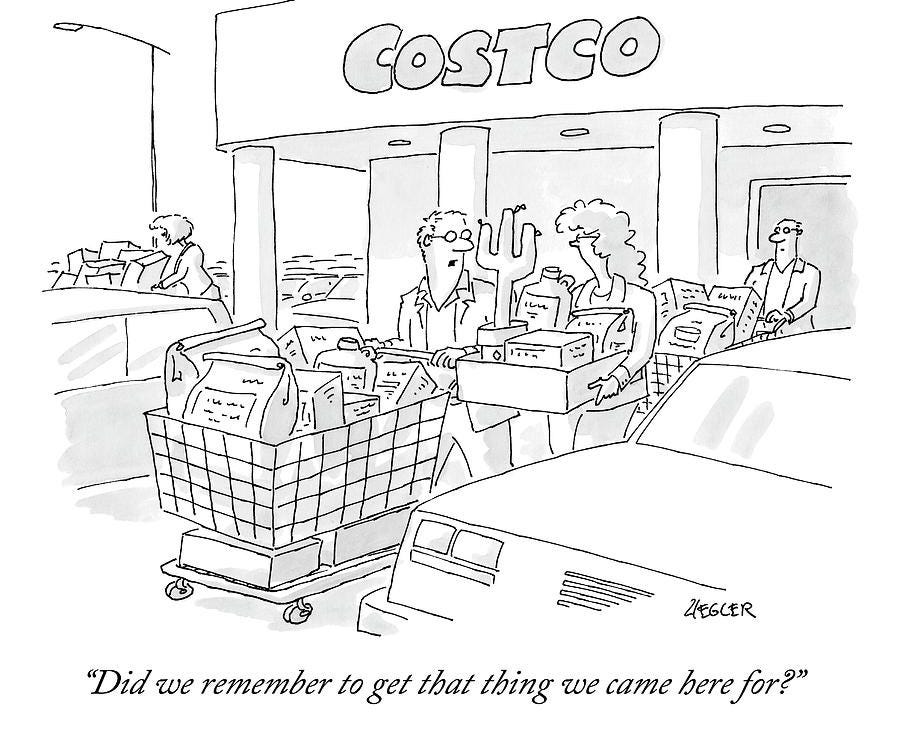 Costco Couples do not move through space so much as occupy it. They drift side by side — astride the cart, moving slowly… then abandon their cart midstream to hold an informal conference next to the always popular 32-pack bulk toilet paper while everyone jammed behind them is reversing and recalculating alternate routes.